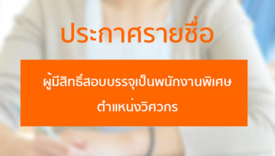 ประกาศผลการคัดเลือกบุคคลเพื่อบรรจุเป็นพนักงานพิเศษรายเดือน ตำแหน่งวิศวกร